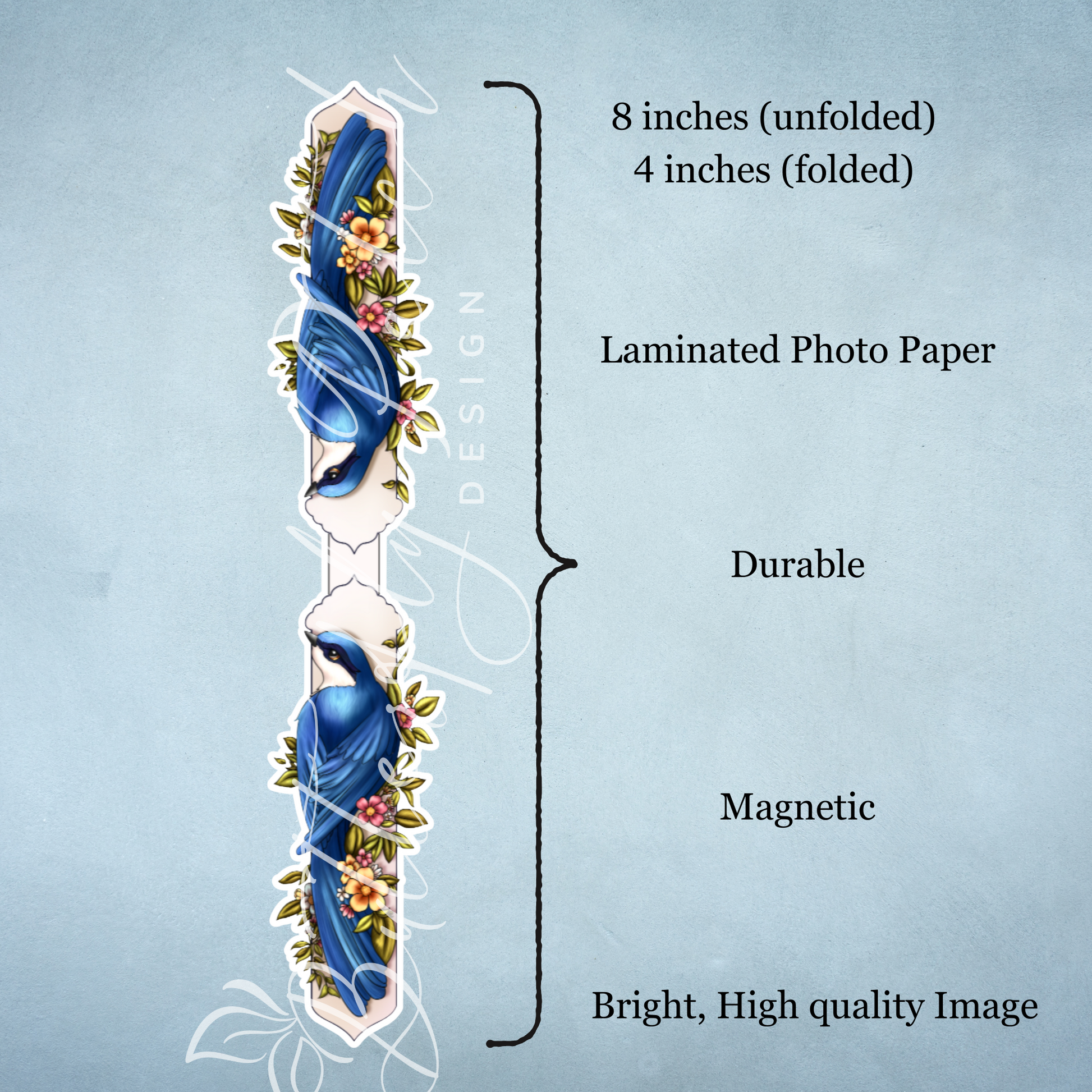 This high quality bookmark is printed on photo paper and laminated!