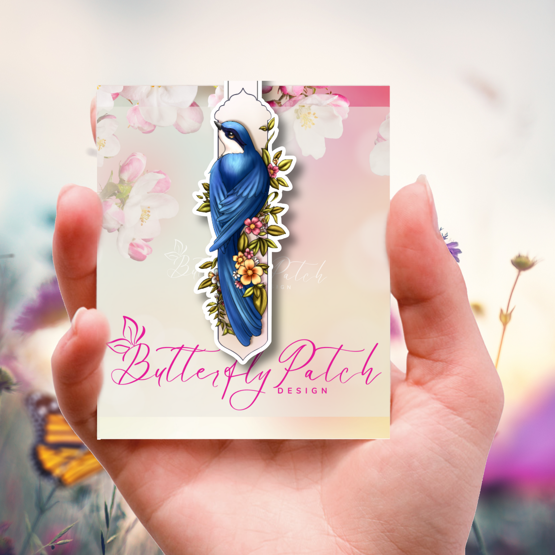 Blue Bird Among Flowers Magnetic Bookmark